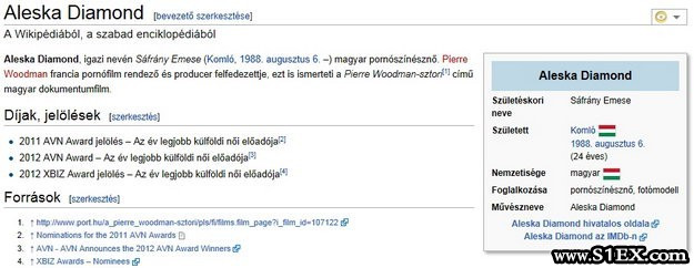 Aleska Diamond, igazi nevén Sáfrány Emese (Komló, 1988. augusztus 6. –) magyar pornószínésznő. Pornós nevei: Aleksa, Aleska A., Alesksa, Alexa, Alexa Diamond, Alexy, Emese, Valentine. Munkásságát megnézheted itt. Pierre Woodman francia pornófilm rendező és producer felfedezettje, ezt is ismerteti a Pierre Woodman sztori című magyar dokumentumfilm. Díjak, jelölések: 2011 AVN Award jelölés, az év legjobb külföldi női előadója, 2012 AVN Award, az év legjobb külföldi női előadója, 2012 XBIZ Award jelölés, az év legjobb külföldi női előadója.